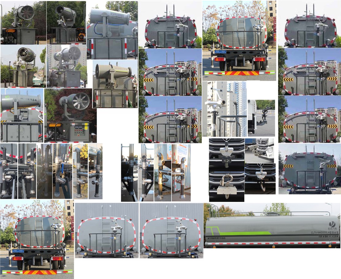 縱昂牌CLT5186GSSBJ6型灑水車該車主要用于城鄉園林綠化,路面噴灑,除塵和降溫;主要裝置為罐體及噴灑裝置;罐體總容量:11.4立方米;罐體有效容積:10.86立方米;罐體外形尺寸(長×長軸×短軸)(mm):5200×2300×1400;4200×2300×1450;側、后防護材料均為:Q235碳鋼,連接方式均為:螺栓連接,后部防護截面尺寸(mm):120×50,后部防護離地高度(mm):470;ABS系統型號:ABS-VI.E;生產企業:廣州瑞立科密汽車電子股份有限公司.ABS系統型號:ABS-E;生產企業:威伯科汽車控制系統(中國)有限公司,ABS系統型號:3550D-1010;生產企業:東科克諾爾商用車制動系統(十堰)有限公司.采用3950mm,4500mm軸距。選裝尿素罐位置,選裝電瓶位置。選裝后部箭頭燈,選裝后部弧形噴灑裝置,選裝水炮支架位置,選裝自動球閥安裝位置,選裝前部水炮樣式,前伸為500mm,對應整車長度為8950mm,7950mm。