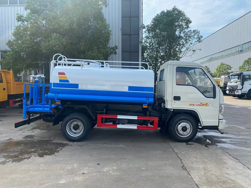 3噸灑水車具體配置:底盤部分,采用福田原廠灑水車底盤,全柴55匹馬力發(fā)動機,2600軸距,萬里揚5檔變速箱,600-16輪胎,國三排放標(biāo)準(zhǔn),,專用部分,罐體采用優(yōu)質(zhì)碳鋼材質(zhì)制作,帶兩個前沖噴頭、兩個后灑噴頭、兩個側(cè)噴、后工作平臺、尾部安裝綠化炮,綠化炮可以自行調(diào)節(jié)(柱狀,大雨,中雨,小雨,霧狀),帶專用灑水泵可以實現(xiàn)自吸自排,帶消防接口,兩根輸水管,此車為出口車型