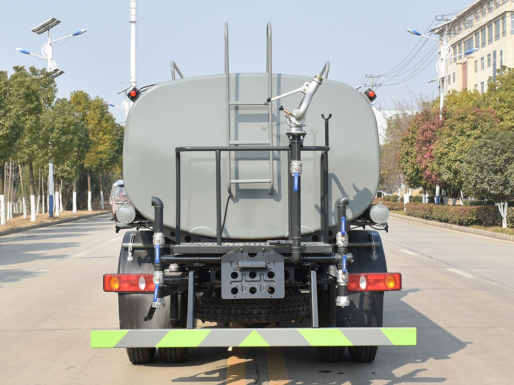 湖北盈通灑水車產(chǎn)品標配前噴(鴨嘴)、后沖、后灑、側(cè)噴、后置式工作 平臺,平臺上配置綠化水炮(可 360°旋轉(zhuǎn),既可以調(diào)成柱狀,也可 以調(diào)成霧狀,更可以調(diào)成直沖狀、大雨、中雨、小雨、毛毛雨),配 備優(yōu)質(zhì)大功率專用灑水泵(可自吸自排,可從河里或池塘抽水到罐體), 取力器,雜物過濾網(wǎng),消防接口,自流球閥系統(tǒng)、取力器、球閥、濾網(wǎng) 均為國家標準產(chǎn)品,主管道加粗,法蘭墊、法蘭盤加厚,大通徑球閥。 整體具備性能優(yōu)良安全可靠、效率高、流量大、維修方便等特點。