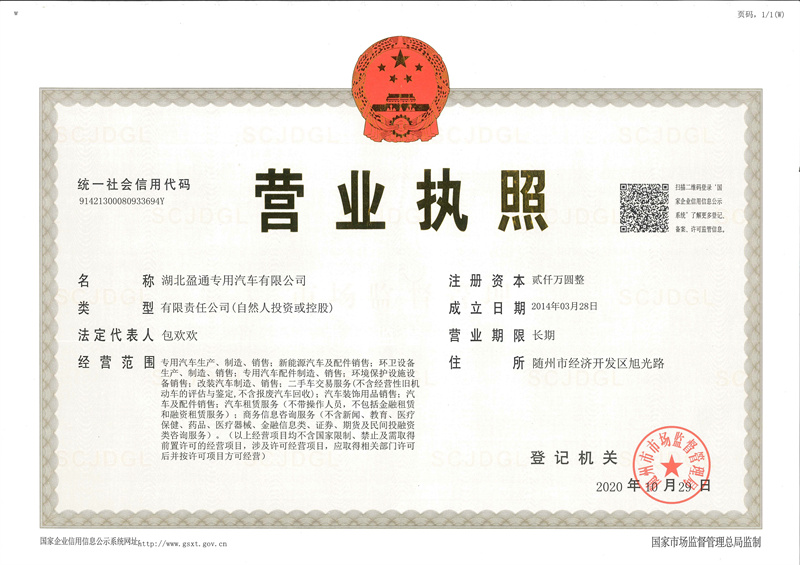 湖北盈通灑水車公司資質(zhì)