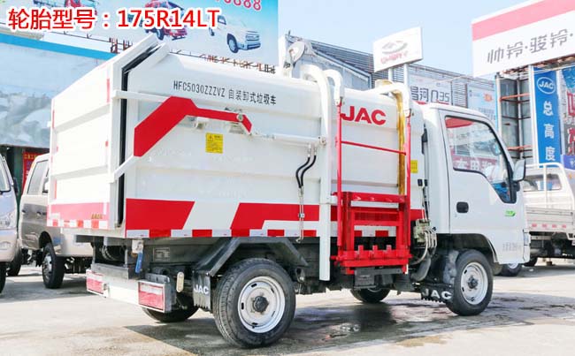 江淮康鈴X1掛桶式垃圾車,柳汽87馬力,5檔變速箱,1.4T后橋,2400軸距,175R14LT(后單胎),帶暖風(fēng)、空調(diào)、可調(diào)方向盤、電預(yù)熱、電熄火、不翻轉(zhuǎn)、金屬漆。
