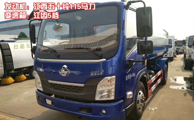 東風柳汽L2掛桶垃圾車,L25單排駕駛室,配江西五十鈴115馬力發(fā)動機,江齒5檔變速箱,Ф265離合,軸距3360,5T后橋/5.571,190(5)車架,120L塑料油箱,7.00R16,固定式駕駛室懸置、扭桿式翻轉(zhuǎn)、電動玻璃升降器、遙控鑰匙+中控鎖(四鎖合一)、液晶儀表、空調(diào)、斷氣剎、ABS。