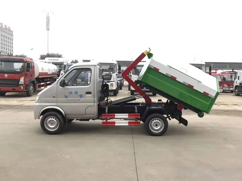 長安勾臂式垃圾車,外形尺寸:4350×1620×1945mm,配套3方垃圾箱使用,垃圾箱體采用武鋼優質碳鋼板材,板材厚度為邊2底3mm,一車可配20個垃圾箱以上,勾臂采用高強度優質錳鋼,副車架采用16號低合金槽鋼、20號方管與8mm、5mm、4mm、16Mn鋼板焊接而成,翻轉架與活動勾臂垃圾車動作設計合理可靠,實現拉箱、鎖緊、放箱和自卸操作簡單方便,控制方式為駕駛室智能控制,也可根據用戶需要選裝駕駛室外傳統操作桿進行控制,該車小巧靈活,任意穿行大街小巷、地下室。