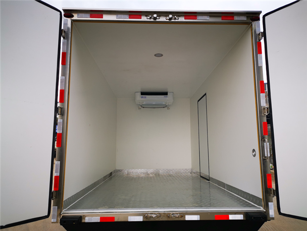 國六慶鈴M100藍牌冷藏車廂體配置為:采用斷橋隔熱工藝,整體框架結(jié)構(gòu)制作,廂體內(nèi)、外壁材料為玻璃鋼板,采用高密度保溫層,廂板內(nèi)帶有骨架,廂體厚度80mm,門框,門飾件、包角全部使用不銹鋼材質(zhì)。最新款鋁合金包邊型材,廂體內(nèi)采用LED照明燈及廂體示寬燈;門框密封條為橡膠材質(zhì),后門梁帶加厚防撞塊,加厚型不銹鋼鉸鏈及鎖件。車體副梁采用510L高強度鋼制作,底板為鋁花紋板(標配塑鋼花紋板,可選鋁花紋板,不銹鋼板),車廂后門帶一個上車扶手,其余標配;
