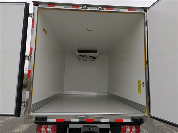 國(guó)六江鈴凱運(yùn)4米2冷藏車廂體配置為:采用斷橋隔熱工藝,整體框架結(jié)構(gòu)制作,廂體內(nèi)、外壁材料為玻璃鋼板,采用高密度保溫層,廂板內(nèi)帶有骨架,廂體厚度80mm,門框,門飾件、包角全部使用不銹鋼材質(zhì)。最新款鋁合金包邊型材,廂體內(nèi)采用LED照明燈及廂體示寬燈;門框密封條為橡膠材質(zhì),后門梁帶加厚防撞塊,加厚型不銹鋼鉸鏈及鎖件。車體副梁采用510L高強(qiáng)度鋼制作,底板為鋁花紋板,車廂后門帶一個(gè)上車扶手,其余標(biāo)配;