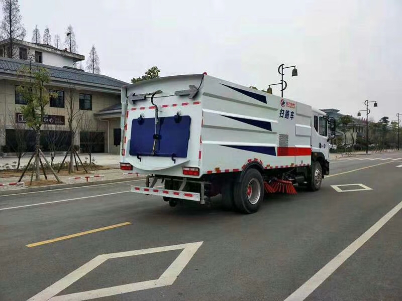 1. 采用吸掃結(jié)合的方式收集垃圾,濕式除塵、電液控制,液壓傾翻卸料的作業(yè)方式對路面進行清掃作業(yè)。