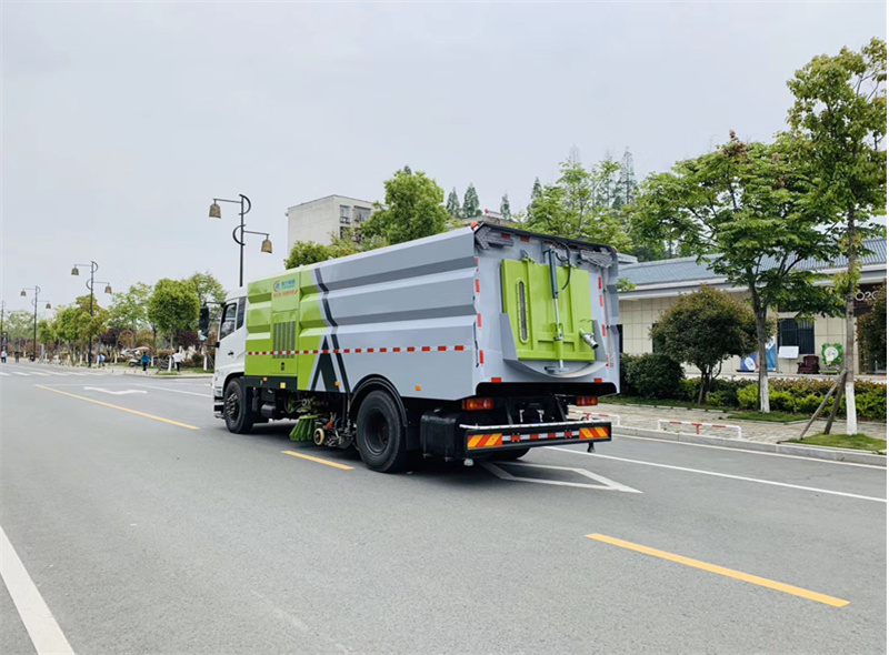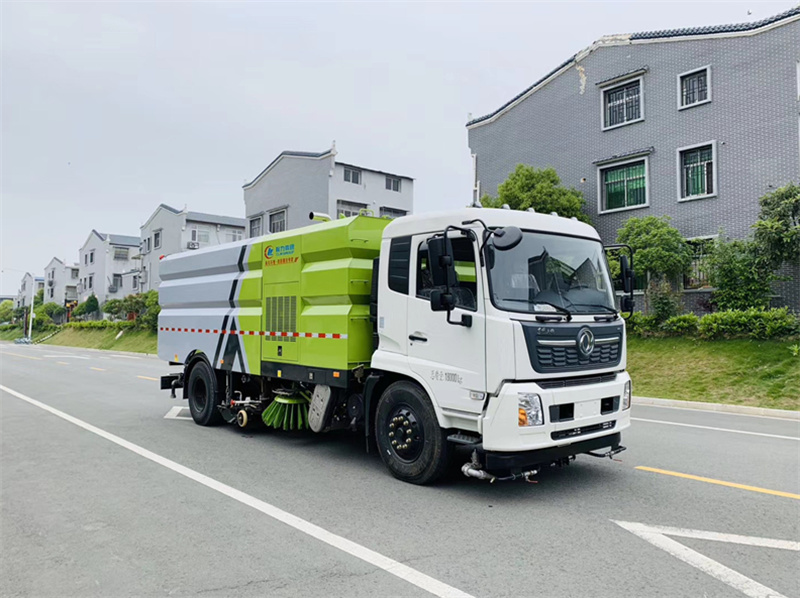 東風18噸洗掃車,帶2個中置掃盤,天錦為康明斯170馬力副發動機;三洋馬達;高壓水泵(前沖/側噴/中噴/后噴霧/沖洗水槍/垃圾箱自潔裝置);高壓路沿清洗噴頭,低壓泵(前沖);不銹鋼垃圾箱;控制器;控制箱;PLC一鍵控制;尾部LED箭頭燈;垃圾箱、水箱均帶防溢低水位報警裝置;倒車及洗掃狀態室內監視器。20m高壓沖洗卷盤。