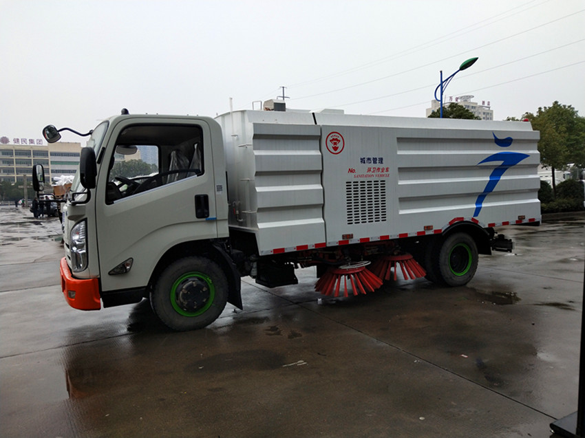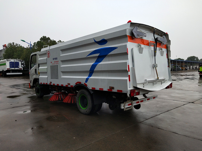 江鈴掃路車隨底盤選裝前面罩,前保險杠,前組合燈具;防護材料:Q235A碳鋼,左右側面防護裝置與專用裝置相干涉,故豁免;后下部防護與車架采用螺栓連接,后部防護斷面尺寸(mm):100×50,后部防護離地高度(mm):410。選裝寬吸盤、兩掃盤結構;ABS系統型號:VIE ABS-II,ABS系統生產廠家:上海萬捷汽車控制系統有限公司。 |