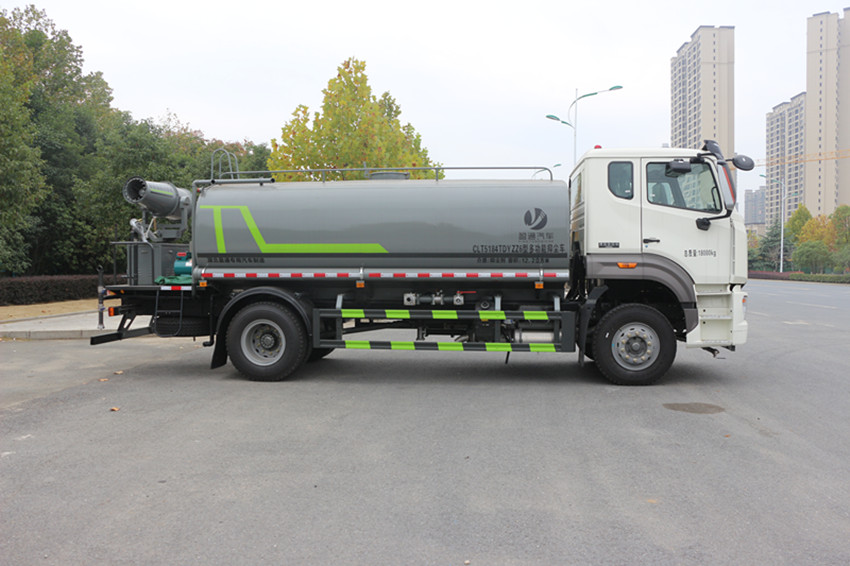 12-15噸灑水車性能簡介:吸程≧7米,灑水寬度≧14-16米,射程≧25-40米,引水時間<5min,流量60m3/h。前沖(噴)、后灑、帶側噴(花灑)、帶后工作平臺、平臺上安裝綠化灑水高炮(炮噴射形狀可調節:直沖、大雨、中雨、毛毛雨、霧狀、可連續調節,360°旋轉),配消防接口,自流閥,濾網,帶自吸自排功能。安裝30-80米霧炮,霧炮可以遙控操作,可以手動操作,按霧炮大小配多大功率發電機