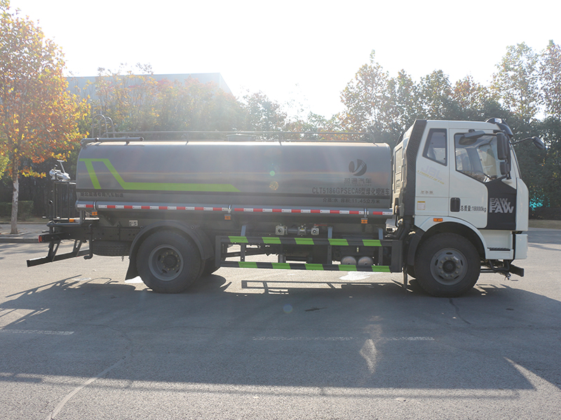 標(biāo)準(zhǔn)配置灑水車主要裝備有:前沖(沖洗公路路面)、后灑(公路路面養(yǎng)護)、側(cè)噴、高位側(cè)花灑(路邊綠化帶優(yōu)化);后工作平臺高壓水炮,可調(diào)節(jié)成柱狀,射程≥28m;也可調(diào)節(jié)成霧狀,射程≥30米,水泵自吸高度:≤7m,灑水寬度:≥15m。側(cè)防護網(wǎng),自流閥,消防接頭。灑水車水泵為常壓水泵,功能可以抽水、排水。另外根據(jù)用戶要求,可加消防泵、噴霧機、農(nóng)藥卷盤、農(nóng)藥柱塞泵。罐內(nèi)可以做防腐防銹、電磁閥氣動閥自動放水等****,以滿足不同用戶需求。