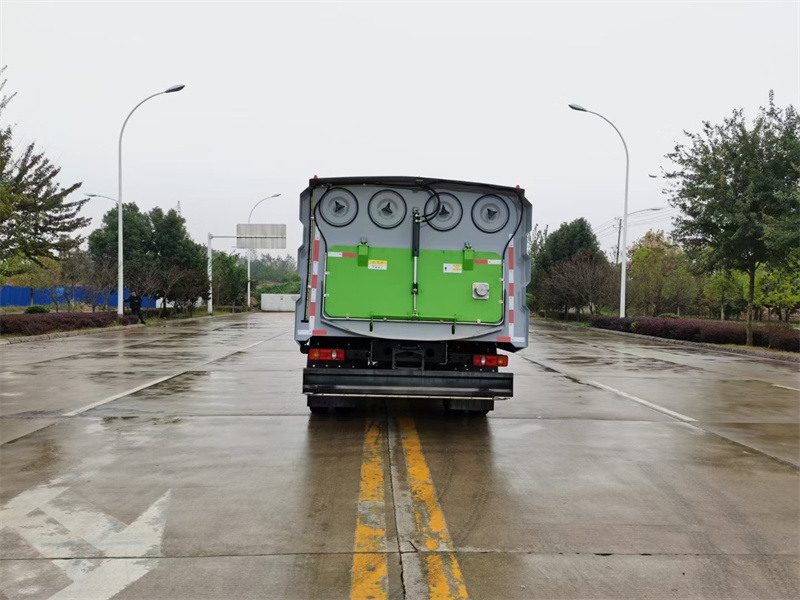 6)具備倒車保護裝置,在作業過程中如遇緊急倒車,智能化的控制系統會自動停止作業并收回掃盤、吸盤和側噴桿;具有防止舉升垃圾箱翻車保護;具有檢修安全保護。