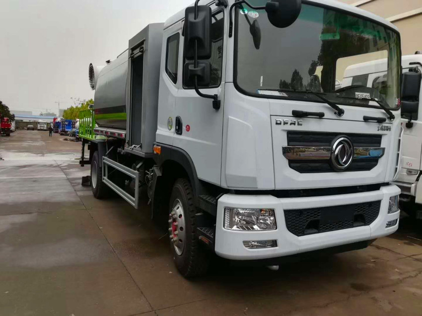 上裝配置:罐體容積為 15-18 立方多功能抑塵灑水車,選配風(fēng)送式霧炮機(jī)組射程50米、60米、80米、100米、120米,罐體鋼板為4mm碳鋼Q235材質(zhì),罐內(nèi)隔板具有防波作用,以減輕汽車行駛時(shí)罐體液體沖擊,罐體及整車外形尺寸按照公告。帶大功率專用灑水泵,泵可自吸自排,整車前沖、后灑、側(cè)噴、帶65消防接口,后平臺(tái)配CLW-50、CLW-60、CLW-80、CLW-100、CLW-120型風(fēng)送式霧炮機(jī)組;罐體前封頭配大功率柴油發(fā)電機(jī)組;遠(yuǎn)程遙控系統(tǒng)控制;霧炮機(jī)自動(dòng)旋轉(zhuǎn)角度0-360°。后平臺(tái)帶綠化灑水炮,灑水炮可全方位旋轉(zhuǎn),可連續(xù)調(diào)成直沖狀、大雨、小雨、毛毛雨;前封頭帶水位計(jì),后平臺(tái)主管路帶1寸澆花接口,后爬梯。帶兩根輸水管及陰陽(yáng)端。罐體顏色:銀/灰/綠,罐體兩側(cè)噴“多功能抑塵車”字樣,貼反光標(biāo)示。