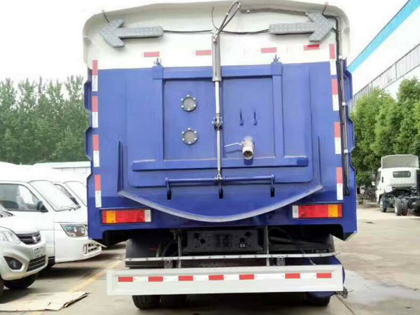 垃圾箱內(nèi)采用大平面斜坡結(jié)構(gòu),最大卸料角度可達(dá)50度,垃圾箱尾門(mén)采用超寬式設(shè)計(jì),開(kāi)口大,更易于傾倒垃圾。垃圾箱內(nèi)置高壓噴淋裝置,垃圾傾倒完成后可以自動(dòng)對(duì)垃圾箱內(nèi)進(jìn)行清潔,節(jié)省了人力,降低了環(huán)衛(wèi)工人們的工作強(qiáng)度。