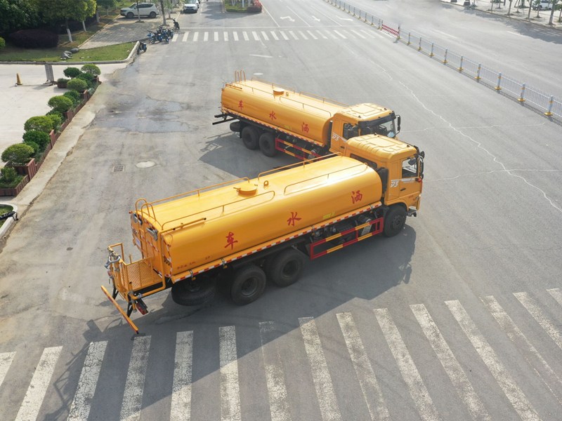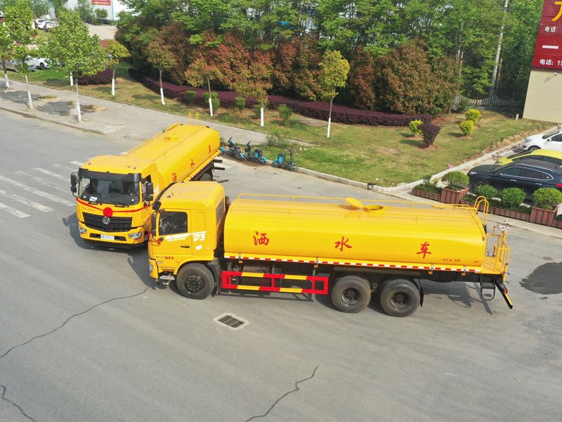 | 用功能配置:罐體實際容積約為19立方米,(罐體有效參數15.17立方米、額定載質量14520kg、)采用武鋼優質碳鋼板卷壓成型。配備專用灑水泵,自吸自排,前噴后灑、側噴、后工作平臺及灑水高壓炮。灑水泵自吸高度為6米左右,整車灑水寬度14米左右,后工作平臺水炮可調成:直沖狀、大雨、中雨、小雨、毛毛雨,有效射程≥28米,整車帶接頭、水位計,自流閥。后工作平臺主管路帶1寸澆花接口,附送2根3米水管,1個爬梯,兩側及后保險杠。 |