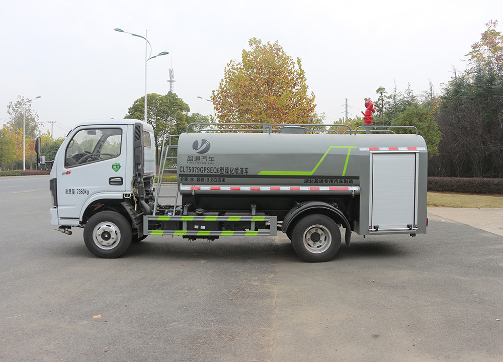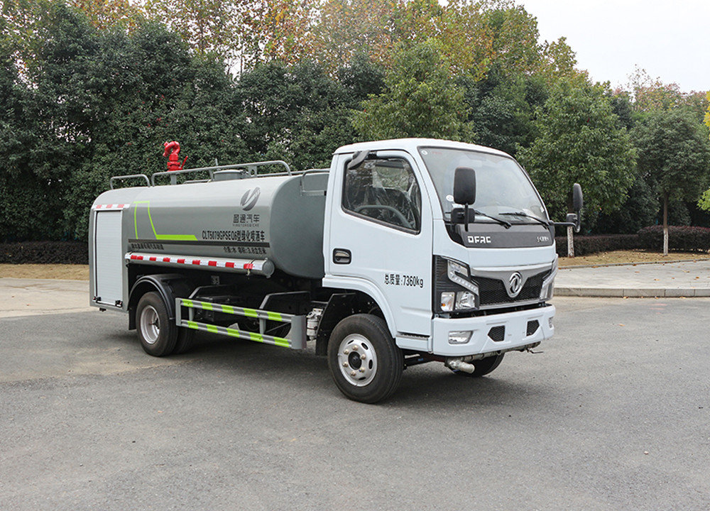 東風5方灑水車產品主要技術參數 序號 名稱 型號、規格 1 整車型號 CLT5071GSSEQ6 型灑水車 2 發動機型號 D20TCIF1 3 發動機馬力/功率 云內 126 馬力/93KW 4 發動機排量 1999ML 5 變速箱 萬里揚 5 檔 6 輪胎規格 7.00 鋼絲胎 7 軸距 3308 8 總質量 7360KG 9 整備質量 3220KG 10 額定載質量 4010KG 11 整車尺寸(長×寬×高) 6.15*1.99*2.4 12 罐體容積 5 方 13 燃料種類 柴油 14 排放標準 國六 15 水泵型號 40/50 16 罐體材質 Q235 碳鋼