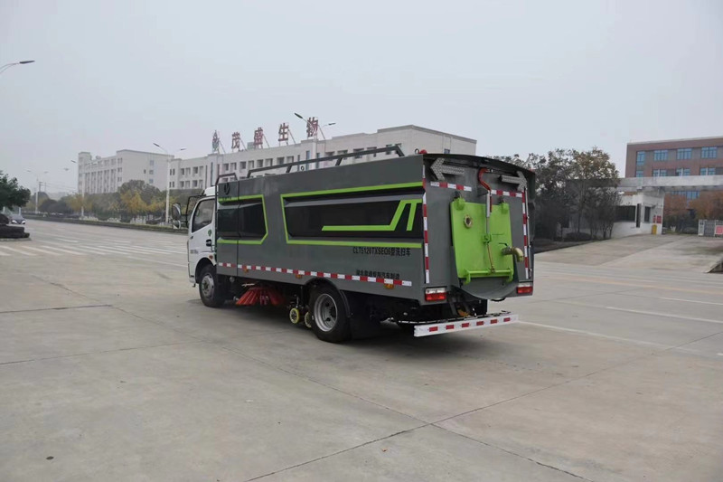 東風多利卡洗掃車采用洗,掃,吸,混合的方式收集垃圾,濕式除塵、電液PLC一鍵控制,液壓傾翻卸料的作業方式對路面進行清掃作業。