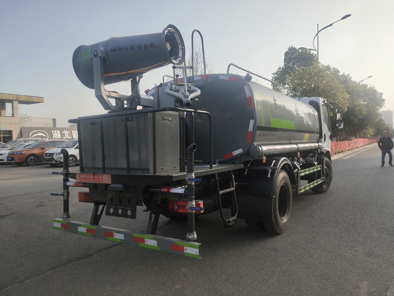 專用部分:帶前沖、后灑、側(cè)噴、后工作平臺、尾部帶綠化炮,帶自吸自排灑水泵,后工作平臺高壓水炮直沖射程25-30米(可調(diào)成:直沖狀、大雨、中雨、小雨、毛毛雨),整車帶消防接頭、自流閥。附送2根水管。加裝30型霧炮,霧炮可以遙控操作。