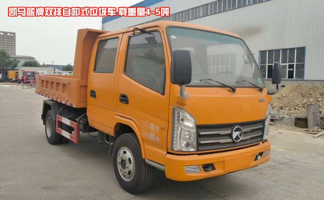 凱馬藍牌雙排自卸式垃圾車,錫柴88馬力(帶DPF),新款五十鈴級雙排車身,5檔變速箱,1063前后橋,7.00R16輪胎,汽剎,方向助力,ABS,原廠空調。