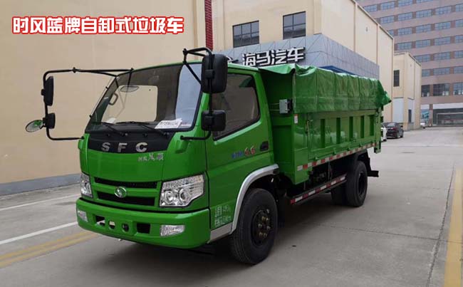 時風藍牌自卸式垃圾車,采用工程自卸底盤,風順一單排駕駛室,3280軸距,一汽錫柴130馬力(帶DPF),萬里揚五擋帶副變速箱,7.50R16朝陽鋼絲輪胎,原廠空調,200雙層大梁,七噸后橋,方向助力,斷氣剎,離合助力,整車尺寸(mm):長5850、寬2045、高2100。