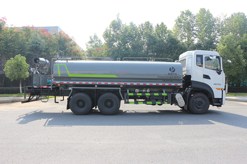 平臺,帶綠化灑水高炮)。四、操作系統:主要由發動機帶動變速箱,變速箱上安裝的取力器帶動灑水泵,灑水泵產生動力,將罐體內部 的液體通過管網噴灑出去。工作范圍:自吸高度:≤7m,灑水寬度:≥14m,最大射程:≥28m;可調節成柱狀,射程≥28m;也可調節成霧狀,射程≥15m。選裝配置:可加裝灑藥盤、藥泵、罐內防腐防銹、多方位進出水接頭、電磁閥、氣動閥等先