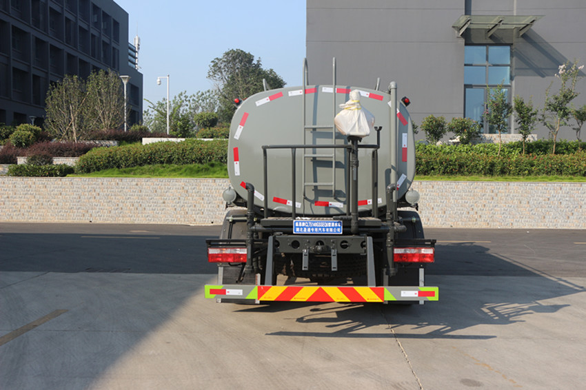 東風8方抑塵車罐體有效容積8方,可裝8噸水,罐體采用4mmQ235B優質碳鋼板制作,配億豐品牌灑水泵,帶自吸功能,灑水高炮,后工作平臺(平臺上加裝霧炮裝置),前沖,后灑,側噴,取力器,自流閥,濾網,控制球閥。