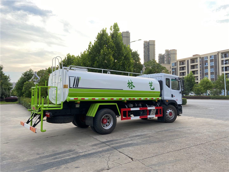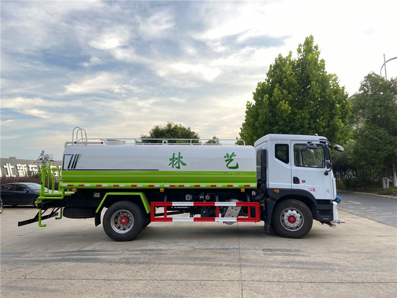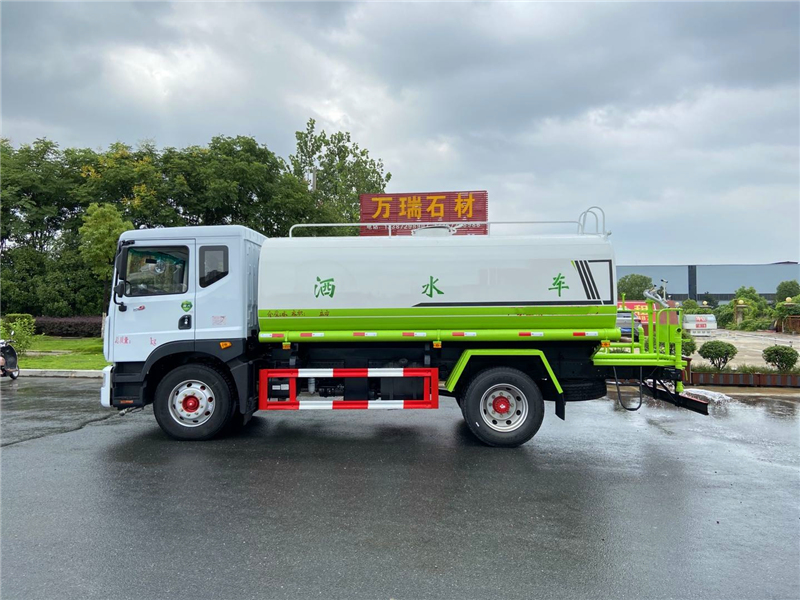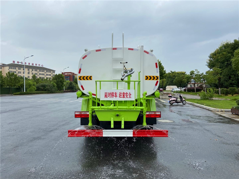3,廣西玉柴機器股份有限公司4缸玉柴200馬力發動機,發動機型號YCS04200-68,法士特8檔變速箱,275/80R22.5真空胎 。4,東風康明斯發動機有限公司6缸康明斯230馬力發動機,發動機型號B6.2NS6B230,法士特8檔變速箱,10.00R20鋼絲胎。3950軸距(也可以選擇4500軸距),帶空調、中控鎖、電動玻璃、轉向器及離合器液壓助力,氣壓制動,排氣制動。灑水車專用功能配置:罐體實際容積約為12--14--16立方米,采用武鋼優質碳鋼板卷壓成型,自動焊接。配備專用灑水泵,自吸自排,前噴后灑、側噴、后工作平臺及灑水高壓炮。灑水泵自吸高度為6米左右,整車灑水寬度14米左右,后工作平臺高壓水炮上下左右360°旋轉可調成:直沖狀、大雨、中雨、霧狀、有效射程≥28米,整車帶接頭、水位計,自流閥。后工作平臺主管路帶1寸澆花接口,附送2根3米水管,1個爬梯,兩側及后保險杠。 灑水車選裝配置: