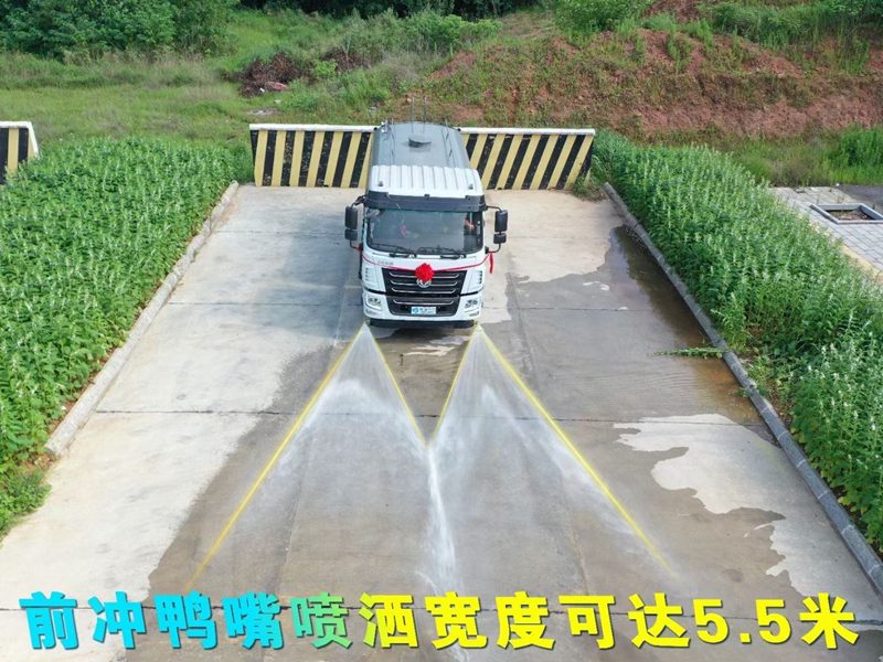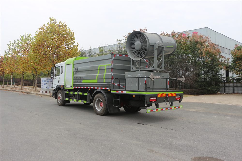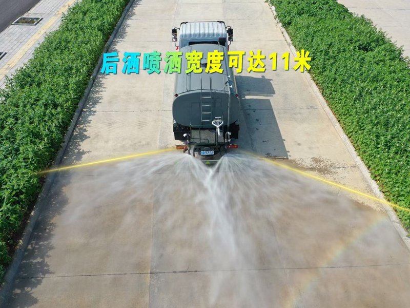 霧炮車專用功能配置:罐體實際容積約為11-12立方米,公告有效參數11立方米、采用武鋼優質碳鋼板卷壓成型。配備專用灑水泵,前噴后灑、左右對沖、側噴、后工作平臺及灑水高壓炮。灑水泵自吸高度為6米左右,整車灑水寬度14米左右,后工作平臺水炮可調成:直沖狀、大雨、中雨、霧狀,有效射程≥28米,后主管道帶一個一寸澆花接口、整車帶接頭、水位計,自流閥及自吸功能。附送2根3米水管,1個爬梯,兩側及后保險杠。