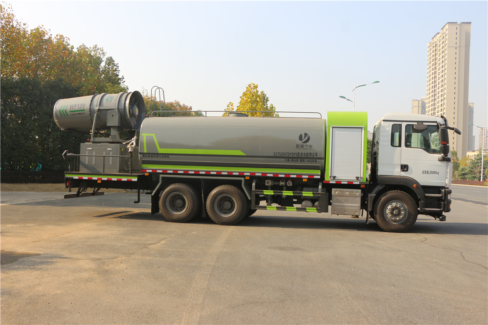 性能簡介:吸程≧7米,灑水寬度≧14-16米,射程≧25-40米,引水時間<5min,流量60m3/h。前沖(噴)、后灑、帶側噴(花灑)、帶后工作平臺、平臺上安裝綠化灑水高炮(炮噴射形狀可調節:直沖、大雨、中雨、毛毛雨、霧狀、可連續調節,360°旋轉),配消防接口,自流閥,濾網,帶自吸自排功能。安裝30-80米霧炮,霧炮可以遙控操作,可以手動操作,按霧炮大小配多大功率發電機
