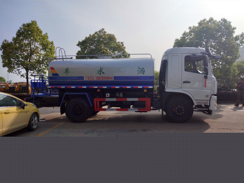 東風灑水車,灑水寬度≧14-16米,射程≧25-30米,引水時間<5min,流量60m3/h。前沖(噴)、后灑、帶側噴(花灑)、帶后工作平臺、平臺上安裝綠化灑水高炮(炮噴射形狀可調節:直沖、大雨、中雨、毛毛雨、霧狀、可連續調節,360°旋轉),配消防接口,自流閥,濾網,帶自吸自排功能。配備大功率專用灑水泵,泵可自吸自排,安裝過濾網,帶消防接口,可通過消防栓進水,帶自流閥,隨車選裝20米綠化卷盤,可噴灑農藥,罐體金屬漆。罐體有橢圓和方圓罐兩種,可根據用戶的要求定做,需要了解12噸灑水車價格及12噸灑水車報價,可以聯系灑水車廠家陶經理銷售電話18872999066,公司官方網址www.dfssc888.cn