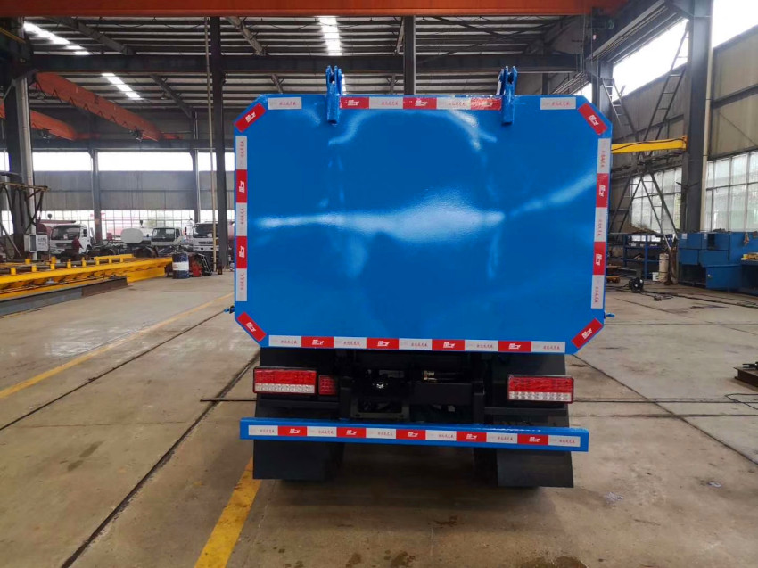 掛桶垃圾車箱體裝置:廂體選用優質碳鋼,邊三底四,內部采取環氧樹脂防腐處理。廂體設計為密封式結構,在箱體前部設有進料箱蓋,側面設有自裝料裝置,箱體后部設有卸料門。