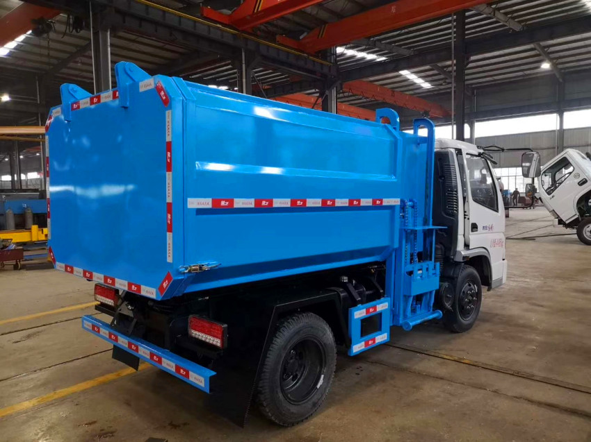 掛桶式垃圾車(自裝卸式垃圾車)介紹:掛桶式垃圾車又稱自裝卸式垃圾車,由密封式垃圾廂、液壓提升翻轉系統、操作系統組成。垃圾桶內垃圾翻倒上下一次工作循環時間≤50秒。可選配全國通用塑料垃圾桶和鐵桶,能實現一臺車與多個垃圾桶聯合作業,循環運輸,充分提高了車輛的運輸能力,節省財務預算。廂體密封性好,無二次污染,可運輸各類垃圾,特別適用于短途運輸和轉運垃圾,如環衛部門對城鎮垃圾的清理、運輸等。