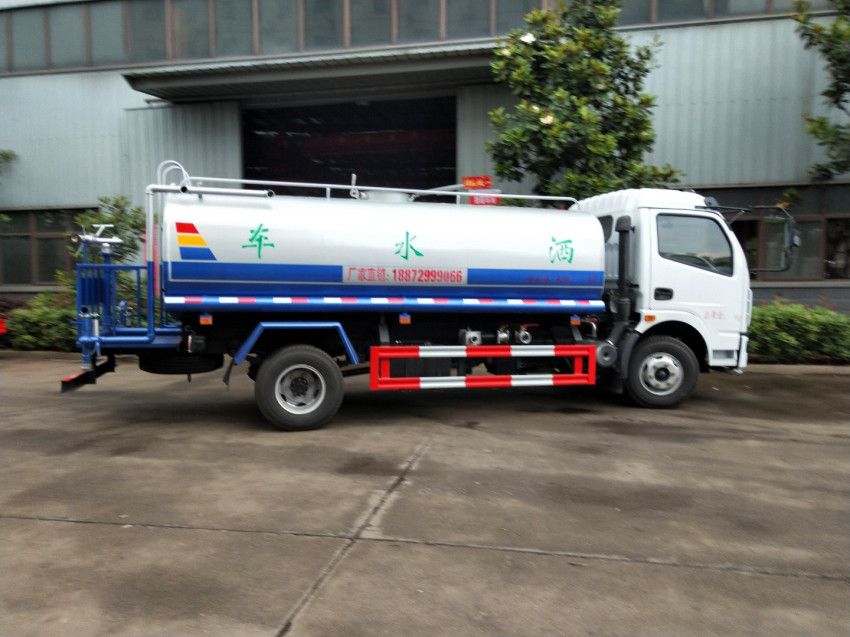 罐體容積10立方、罐體4.5mm厚、罐體尺寸:4200*2050*1400(mm)、采用威龍40/50灑水泵,配前對沖、后灑、側(cè)噴、后工作平臺、水炮、灑水管路采用無縫鋼管,罐體前間有量水管,安裝濾網(wǎng),帶消防接口。罐體采用機(jī)器壓板一次性成型技術(shù),采用先進(jìn)旋邊機(jī),罐體包罐機(jī)工藝保證了罐體制作的精度和美觀。全國獨(dú)有烤漆工藝,防腐除銹,多層底漆、面漆噴涂。功能齊全,灌溉、噴灑、道路養(yǎng)護(hù),噴霧降塵、高炮噴射等,采用優(yōu)質(zhì)水泵,合理設(shè)計(jì)水路管道,氣控取力器,作業(yè)能力強(qiáng);加大罐體設(shè)計(jì),可以裝5噸水,提高了車輛的使用效率。