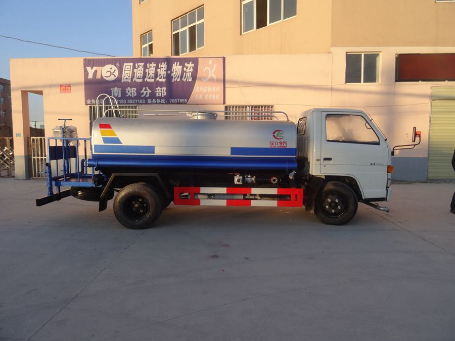 改裝配置:罐體采用4mm厚武鋼專用容積板制作,實際容積5立方,罐內隔板具有防波作用,以減低汽車行駛時罐體液體的沖擊。泵 進泵出,消防栓接口,前沖、后灑、側噴、后工作平臺帶綠化水炮,垂直吸程≧7米,灑水寬度≧14-16米,射程≧20-25米,引水時 間<5min,流量90m3/h。自流閥、濾網、帶自吸自排功能。兩根等長輸水管,金屬漆,其余標配。可加裝藥盤、氣動控制閥、噴藥設備、非車帶泵動力等。