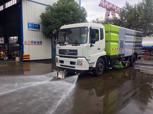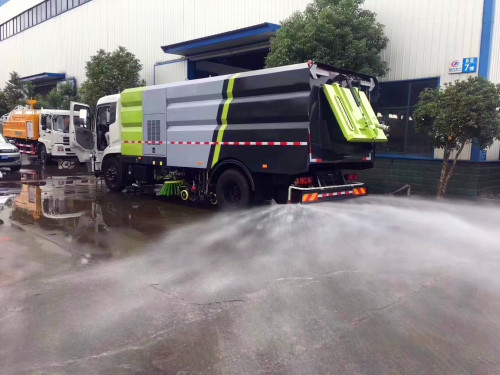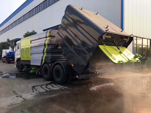 翻卸料的作業(yè)方式對路面進(jìn)行刷洗作業(yè)。