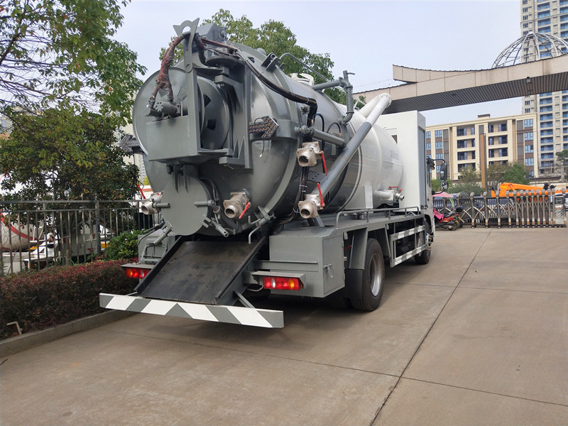 清洗罐6立方,污水罐8立方,配80米直徑19清洗管,配10個(gè)不同規(guī)格的高壓噴頭,尾部左側(cè)后置式清洗卷盤,吸污部分安排偉業(yè)牌大功率10T真空吸污泵,帶10米吸污管一根,罐體右后側(cè)安裝150排污閥,側(cè)抽上料口采用直徑115加厚型無縫管,(清水罐和污罐)頂部安裝三爪干灰蓋,加大工具箱,水污互通。