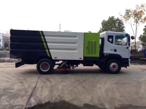 9、駕駛室手動按鈕式液壓系統驅動主吸盤升降、左右副吸盤驅動、脈沖清理功能、垃圾箱后門開閉、垃圾箱傾翻復位等機械動作。