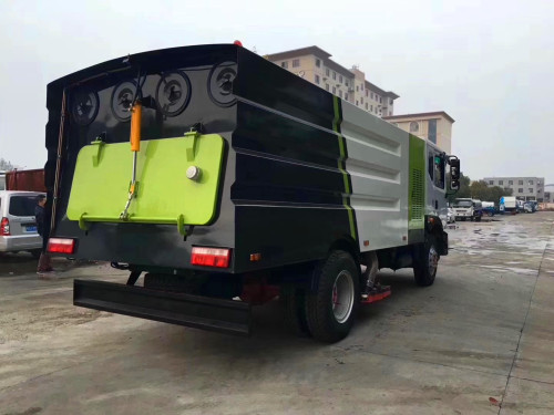 6、垃圾箱容積7m3,內部加裝進口防水材料濾筒,垃圾分類存放,能有效地對樹葉,石子,灰塵進行粗細處理,廂體采用傾翻卸料。