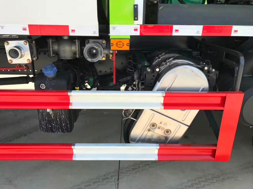 該車主要用于城鄉園林綠化灑水;主要裝置為水罐和噴灑總成.選裝正后平臺結構側部管道裝置結構及后部灑水裝置.運輸介質為:水,密度:1000千克/立方米.罐體有效容積11.27立方米.軸距/外形長/前懸/后懸/罐體外形尺寸(長×長軸×短軸)(mm)對應關系:3950/7600/1400/2250(1430/2220)/4300×2250×1500,4500/8250/1400/2350(1430/2320)/5000×2250×1500,4700/8450/1400/2350(1430/2320)/5000×2250×1500.選裝后部灑水裝置時對應軸距/外形長/前懸/后懸/罐體外形尺寸(長×長軸×短軸)(mm)對應關系:3950/7600/1400/2250(1430/2220)/4100×2250×1500,4500/8150/1400/2350(1430/2320)/4700×2250×1500,4700/8350/1400/2350(1430/2320)/4700×2250×1500.防護材料:Q235碳鋼,連接方式:左右側面及后下部防護均采用焊接連接,后部防護裝置斷面尺寸(寬×高)60×140(mm),后部防護離地高度(mm):480(mm).選裝高度不同的駕駛室;選裝前霧燈;選裝駕駛室頂部裝飾燈;選裝駕駛室前面罩;選裝前保險杠及前部燈具,選裝后視鏡;選裝后部燈具;駕駛室前臉擾流罩為選裝件;駕駛室臥鋪側窗選裝裝飾板.安裝帶衛星定位功能的行駛記錄儀.ABS型號:3631010-C2000,4460046450;生產廠家:東科克諾爾商用車制動系統(十堰)有限公司,威伯科汽車控制系統(中國)有限公司.僅采用3950(mm),4500(mm),4700(mm)軸距底盤.