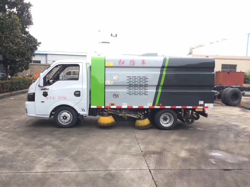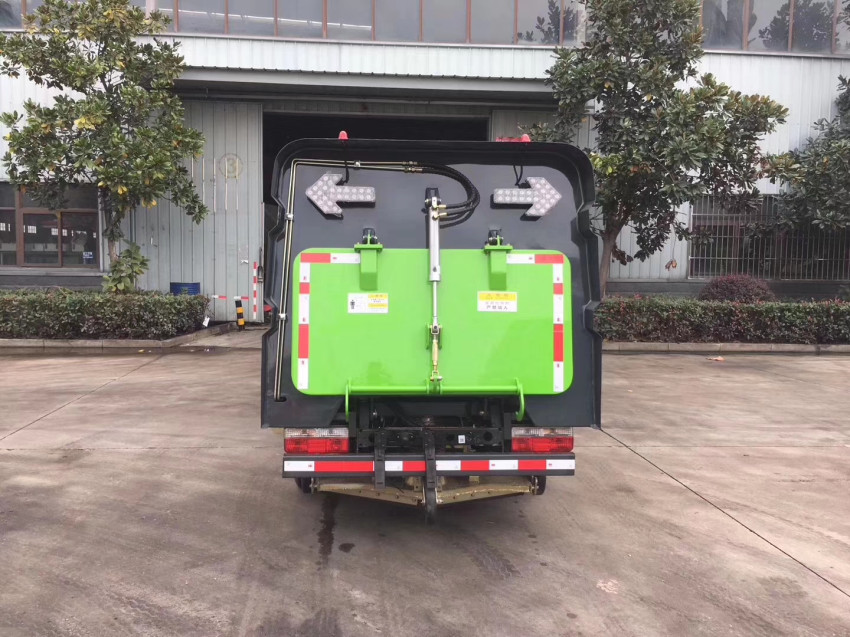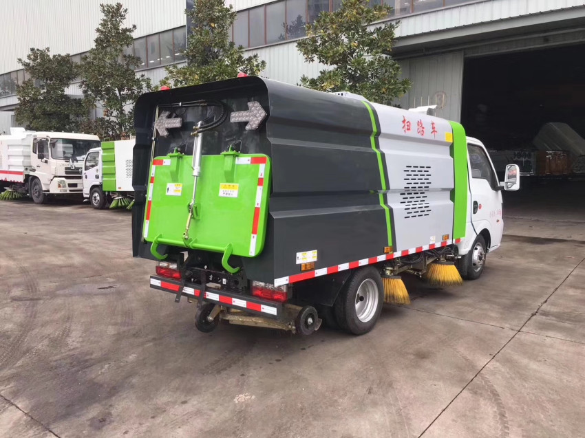 小型掃路車裝標配:帶4個掃盤、江鈴副發動機、三洋馬達、施耐德控制開關、海普瑞斯電磁閥組、無級變速自動離合器、免維護離心式自動風機、不銹鋼垃圾箱、尾部LED箭頭指示燈、手動泵應急系統、中聯北極星電子水泵,垃圾舉升自卸功能。