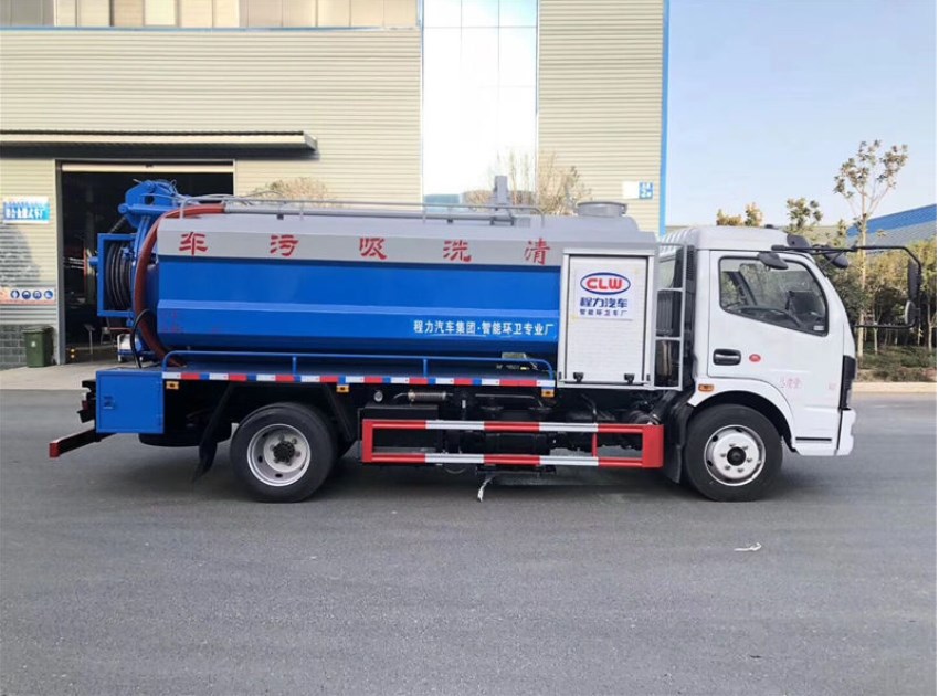 吸污:由底盤發動機驅動的真空泵使污水罐產生真空,將吸污管插入污泥中,污物在大氣壓的作用下被吸到污水罐中。污水過濾后排回下水道,污物留存在污水罐中,運送到指定地點后排放。