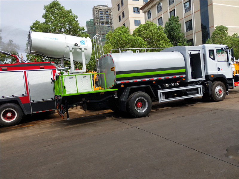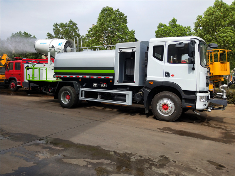 該車用于噴灑路面,起除塵和降溫作用的罐式專用作業汽車;罐體有效容積:10.8立方米,運輸介質:水,密度:1000千克/立方米;罐體外形尺寸(長×寬×高)(mm)為:5000×2200×1460,整車長(mm)/前懸(mm)/軸距(mm)/后懸(mm)對應關系為:8430/1430/4700/2300,8400/1400/4700/2300;8430/1430/4500/2500,8400/1400/4500/2500;隨底盤選裝駕駛室;側防,后防采用Q235材質螺栓連接在大梁上,后防護截面尺寸(mm):140×50,離地高度(mm):450;ABS型號/生產廠家:3631010-C2000/東科克諾爾商用車制動系統(十堰)有限公司,ABS 8/東科克諾爾商用車制動系統(十堰)有限公司, 4460046450/威伯科汽車控制系統(中國)有限公司;在不影響專用性能情況下選裝前沖樣式和花灑等灑水裝置,選裝不同外觀.