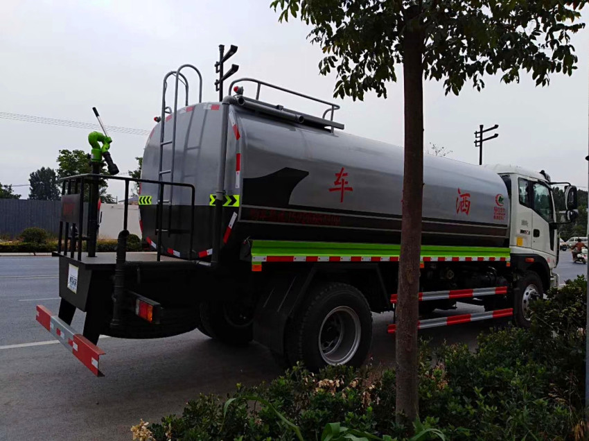 1. 灑水車罐體采用優質碳鋼制作,配備大功率專用灑水泵。垂直吸程>6米,灑水寬度>14米,射程>28米。