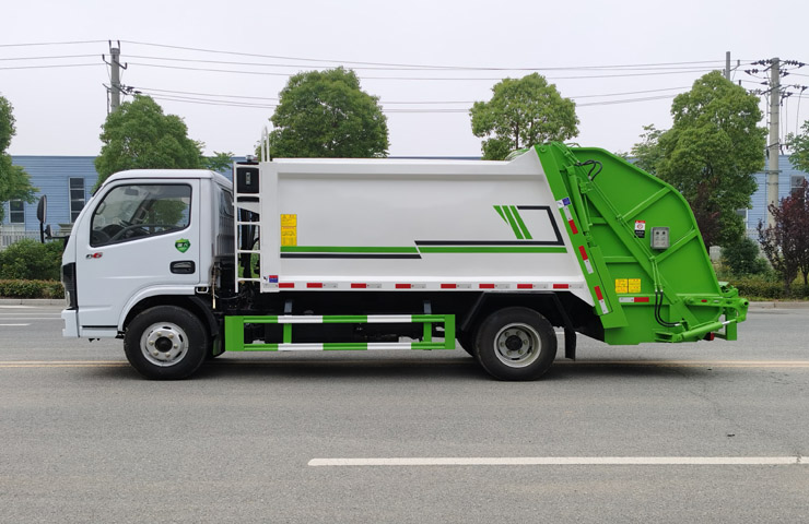 東風(fēng)國(guó)六D6垃圾車- 6方壓縮式垃圾車技術(shù)參數(shù)底盤配置:多利卡D6排駕駛室,國(guó)六朝柴130馬力發(fā)動(dòng)機(jī)(玉柴140馬力),軸距3308mm,萬里揚(yáng)5檔變速箱,7.00R16鋼絲胎,帶原裝空調(diào),中控鎖,電動(dòng)門窗,ABS,液壓方向助力,多功能方向盤,LED日間行車燈。上裝配置:弧形箱體,容積約6立方,采用特種鋼板制作,箱體底板4mm,邊板4mm,博利油缸,中梅多路閥,長(zhǎng)源液壓油泵,填裝器舉升油缸帶液壓鎖裝置,采用進(jìn)口西門子PLC電控系統(tǒng)(帶一鍵操作,和手動(dòng)操作兩種控制方式),電控操作盒三只。帶2個(gè)污水收集箱,尾部帶橡膠密封條。填充器加裝后照明燈,箱體油漆及噴字按用戶要求定制。