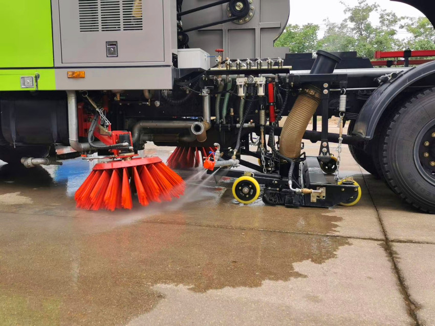 該車集掃路車、灑水車和高壓清洗車功能于一體,具備路面清掃、路面洗刷、高壓清洗、低壓沖洗、路緣石洗刷、垃圾收集、污水回收、噴霧降塵和道路隔離墻清洗、小廣告清洗等多種作業功能。