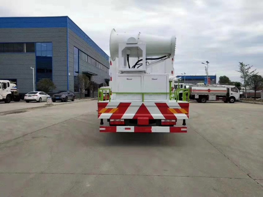 東風D9多利卡12-15噸綠化灑水車改裝配置:罐體用4MM碳鋼板制作,罐內隔板具有防波作用,以減低汽車行駛時罐體液體的沖擊。整車帶一個專用灑水泵(垂直吸程6米),灑水寬度14米,射程28米。多功能灑水車配備2個前沖(噴)(能將路面泥巴、塵土、垃圾沖干凈);2個后灑(能均勻地將水灑在路面,一次灑水寬度14米)、2個側噴(花灑)(能均勻地將路旁綠化帶澆灌)、帶1個后工作平臺,平臺上安裝1個綠化灑水高炮(灑水炮可全方位旋轉,可連續調成直沖狀、大雨、小雨、毛毛雨,霧狀可調節沖洗高大樹木),引水時間<5min,流量90m3/h。帶1個消防接頭,帶1個自流閥,1個過濾裝置、人性化爬梯及側防護欄,安裝灑水音樂喇叭。