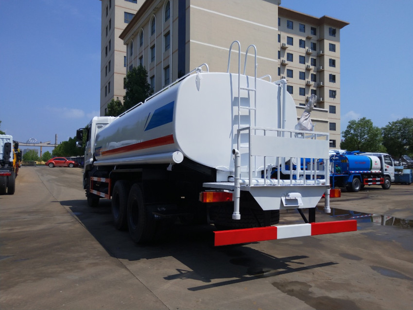 1、僅選用4350+1350軸距底盤,有效容積:14.6立方米。 2、整車長/前懸對應關系為(mm)10200/1500,10180/1480。罐體尺寸(罐體長×長軸×短軸)為(mm):6700×2300×1370。 3、側防護及后下部防護裝置均采用Q235B材質,均采用焊接連接, 后部防護斷面尺寸(mm):150×50,后部防護離地高度(mm):480。 4、ABS型號/生產廠家:3631010-C2000/東科克諾爾商用車制動系統(十堰)有限公司,ABS 8/東科克諾爾商用車制動系統(十堰)有限公司,4460046450/威伯科汽車控制系統(中國)有限公司。 5、專用裝置:罐體,主要用于園林綠化及灑水。6、隨底盤選裝駕駛室。