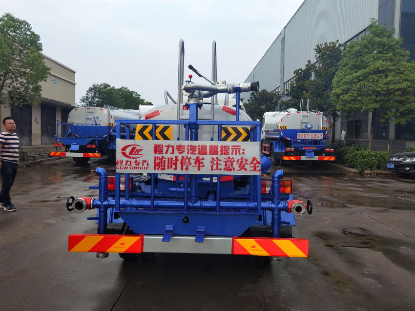 灑水車性能簡介:吸程≧7米,灑水寬度≧14-16米,射程≧25-40米,引水時間<5min,流量60m3/h。前沖(噴)、后灑、帶側噴(花灑)、帶后工作平臺、平臺上安裝綠化灑水高炮(炮噴射形狀可調節:直沖、大雨、中雨、毛毛雨、霧狀、可連續調節,360°旋轉),配消防接口,自流閥,濾網,帶自吸自排功能。