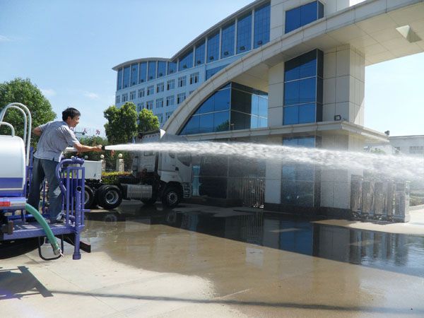 灑水車性能簡介:吸程≧7米,灑水寬度≧14-16米,射程≧25-40米,引水時間<5min,流量60m3/h。前沖(噴)、后灑、帶側噴(花灑)、帶后工作平臺、平臺上安裝綠化灑水高炮(炮噴射形狀可調節:直沖、大雨、中雨、毛毛雨、霧狀、可連續調節,360°旋轉),配消防接口,自流閥,濾網,帶自吸自排功能。