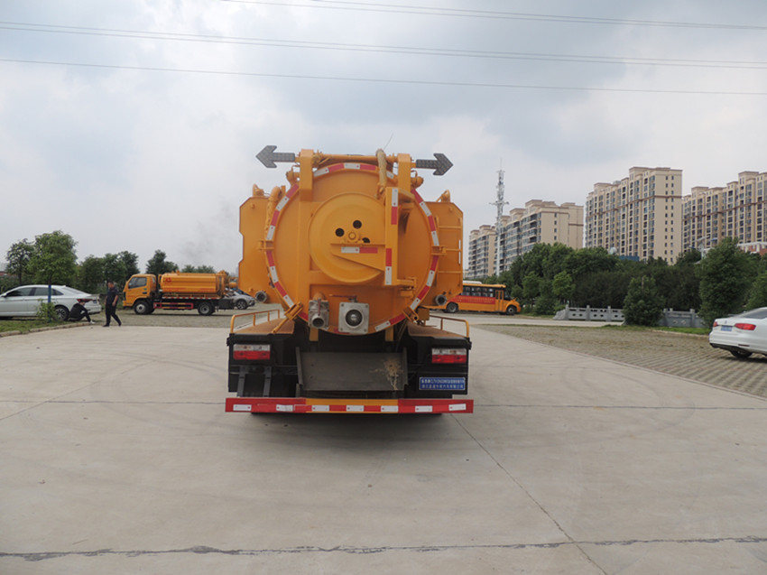 東風(fēng)清洗吸污車清洗部分:清洗罐采用5mm武鋼碳鋼制作,容積約2.7方,帶視水管,安裝德國品孚高壓清洗泵,壓力22Mpa,流量215L/min,帶60米內(nèi)徑19mm清洗鋼絲軟管,標(biāo)配十個(gè)不同口徑合金噴頭,卷管力為1800N,卷管速度0-25m/min,推進(jìn)力度大于180N,可通直徑10-80公分水管及下水道管道。
