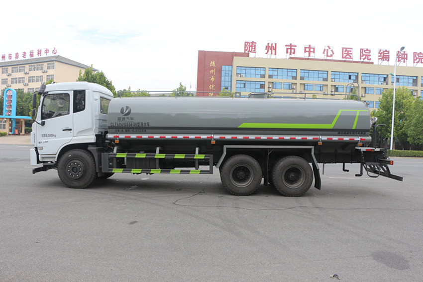 灑水車,又稱:綠化噴灑車、多功能灑水車、園林綠化灑水車、水罐車、運水車。具有灑水、壓塵、高、低位噴灑,農藥噴灑、護欄沖洗等功能,還具有運水、排水,應急消防等功能?筛鶕蛻粢蠹友b霧炮、電子水炮、推雪產、駕駛室自動控制系統等。